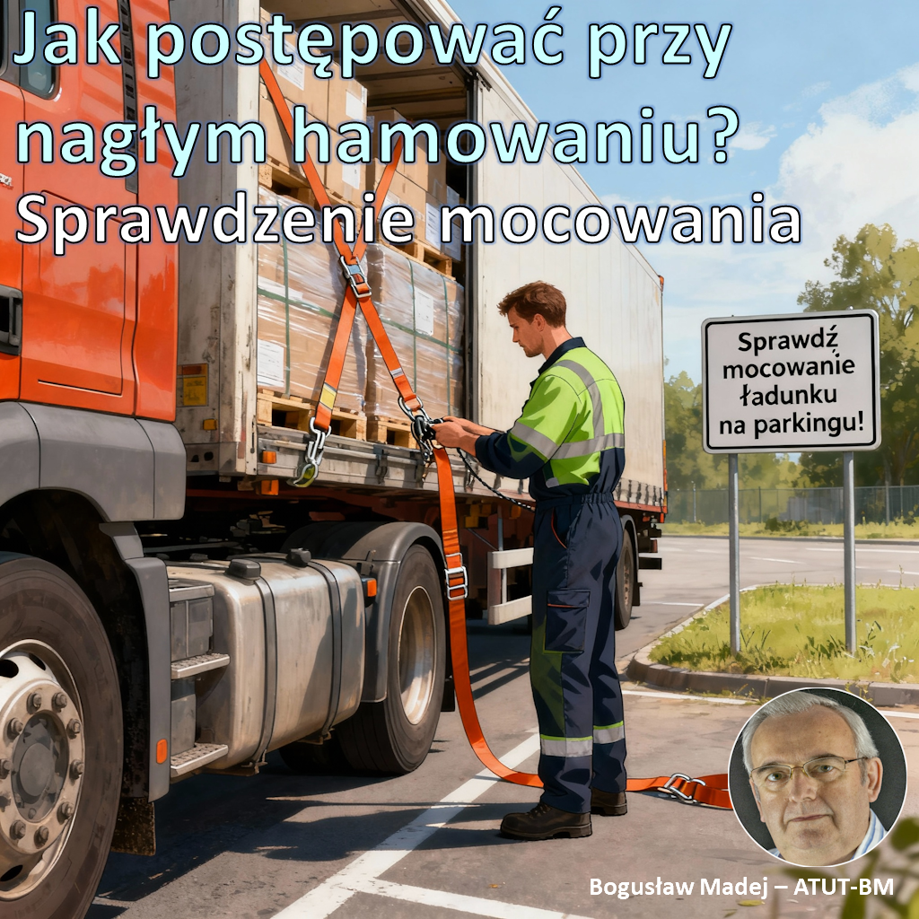 Nagłe hamowanie to jedno z najbardziej ryzykownych i stresujących zdarzeń na trasie przewozowej. W ciągu ułamka sekundy na pojazd i ładunek działają siły, które mogą przekroczyć normy nawet o 80% masy przewożonego towaru, zgodnie z normą EN 12195-1. Takie przeciążenie prowadzi do przemieszczenia, obluzowania lub zerwania mocowań, nawet jeśli wcześniej spełniały wszelkie wymogi techniczne. Każdy profesjonalny kierowca i operator transportu musi wiedzieć, że po awaryjnym hamowaniu najważniejsza jest natychmiastowa kontrola zabezpieczeń oraz szybkie wdrożenie procedur zgodnych z CMR, Kodeksem Drogowym i normami europejskimi. To klucz nie tylko do bezpieczeństwa ludzi, sprzętu i ładunku, ale też do uniknięcia wysokich kar przewidzianych przez inspekcje i odpowiedzialności cywilnej.
